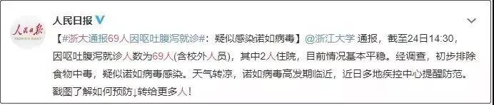 浙大通报69人因呕吐腹泻就诊,疑似感染诺如病毒。