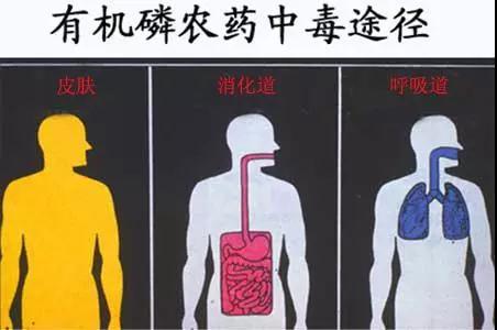 有机磷农药误服或主动口服(见于轻生者),口服毒物后多在10分钟至2小时内发病;经皮肤及黏膜进入是6天内发病;而空气中的有机磷会随呼吸进入体内。