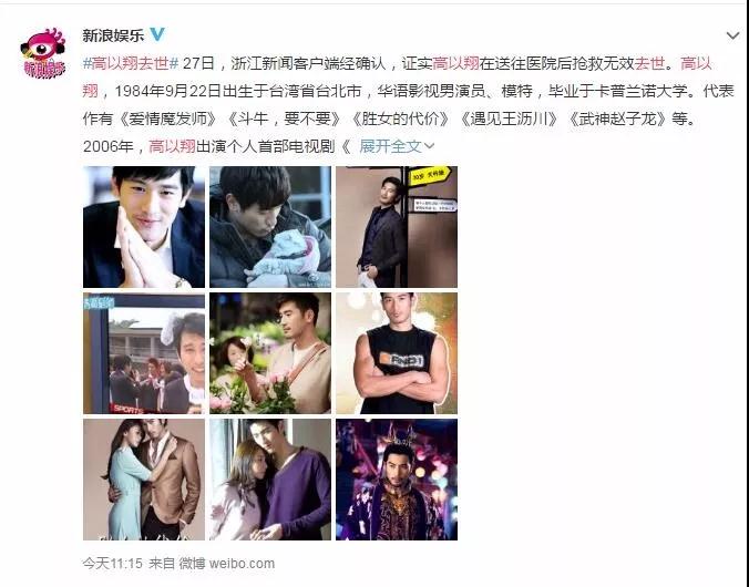 2019年11月27日清晨,微博热搜爆出高以翔摔倒昏迷,急救送医的消息。随后全网陷入一片焦灼的等待,几乎所有粉丝都在为这位35岁,年轻且优秀的男演员祈祷。 上午10点多,浙江新闻客户端经确认,证实高以翔在送往医院后抢救无效去世,突逝原因为心源性猝死。 目前高以翔家人正在赶往医院,但来不及见其最后一面了,无数粉丝听到这个消息都忍不住落泪。