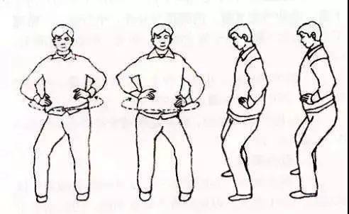 先将腰向左侧送出去,然后再往前、右、后,顺时针转圈。 整个过程要慢,双肩不能动,双膝不能弯,慢慢转上30~50圈,再逆时针转30~50圈。