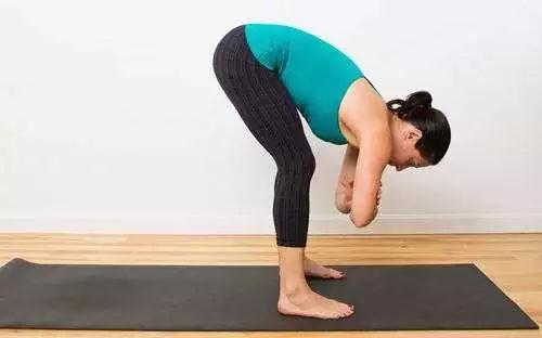 起身,双手撑腰,上身后仰,腹部尽量往前凸出。以后重复上述动作。双手交替摸双脚趾。