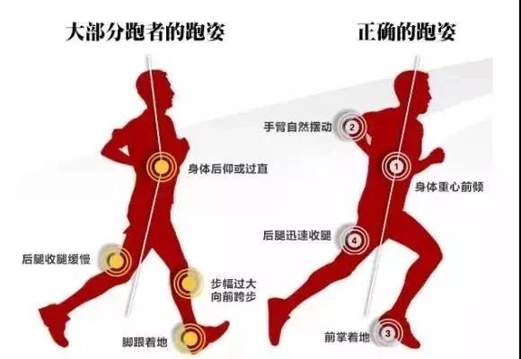 正确的跑步姿势应为:上体稍微前倾,头位于躯干正上方,两肩稍提,两肘屈成90度,双手握空拳。
