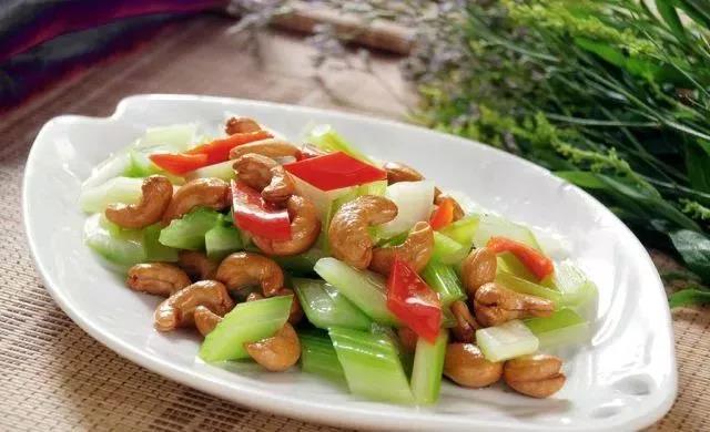 坚果可以以佐餐烹饪入菜,加入到正餐中,如西芹腰果、腰果虾仁等。坚果还可以和大豆、杂粮等一起做成五谷杂粮粥。再比如猪脚炖花生,猪脚富含胶原蛋白,花生富含维生素E,是天然的养颜补品。