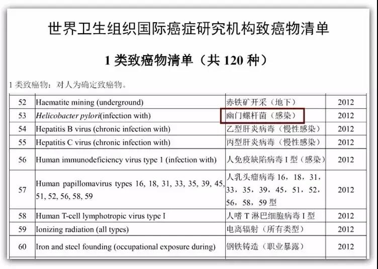 将幽门螺杆菌列为1类致癌物