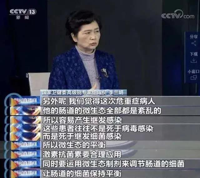 此次疫情中,李兰娟院士运用了益生菌的治疗方法。
