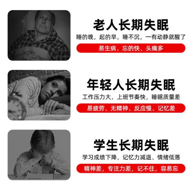 适用人群:工作压力大的白领人士,经常出差需要倒时差的人士, 考试压力大的学生人群, 中老年睡眠不佳, 抑郁症等入睡困难的群体。
