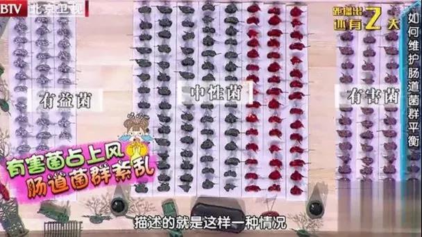 人体70%的免疫力都来自肠道。在人体肠道内的微生物中,超过99%都是细菌,数量多达10万亿个,它们主要分为三类:益生菌、中性菌、有害菌。而肠道不健康的时候就代表这3种菌群已经失调了。