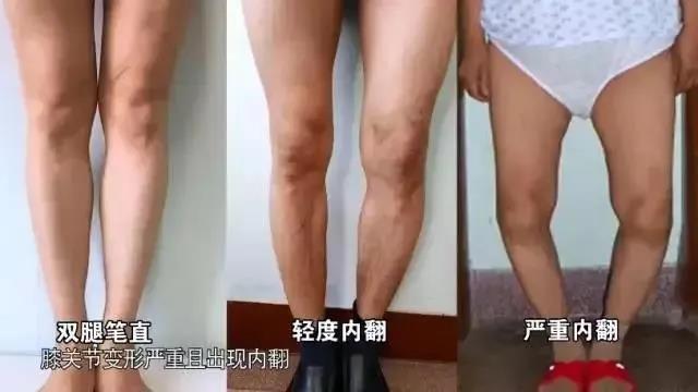 走路:如果走路时的姿势开始变得不自然,腿不能伸直,则说明膝关节的间隙变窄了,膝关节变形严重且出现内翻。