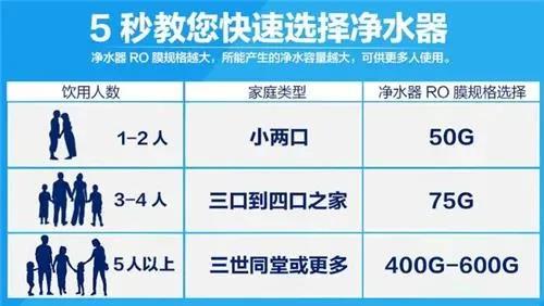净水器的通量就是我们看到产品会标示50G、75G、200G、400G、600G等不同数据,数据越大,说明通量越大,水流量大,速度快,可以满足更多人同时饮水。那么同样,通量大的净水器,价格也相对贵一些。