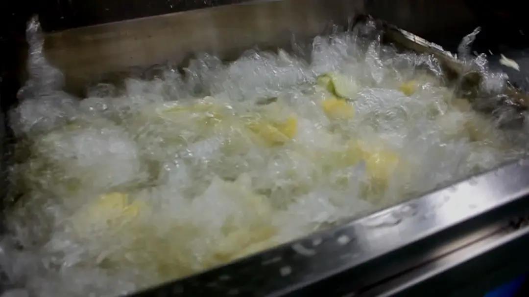 据技术人员解释是因为西兰花表面被多次喷洒农药,农药和西兰花顶部的花粉、脂质会逐渐形成一层“脂膜”,从而挡住了水。只有净化分解了脂膜,水才能自然渗透进西蓝花。