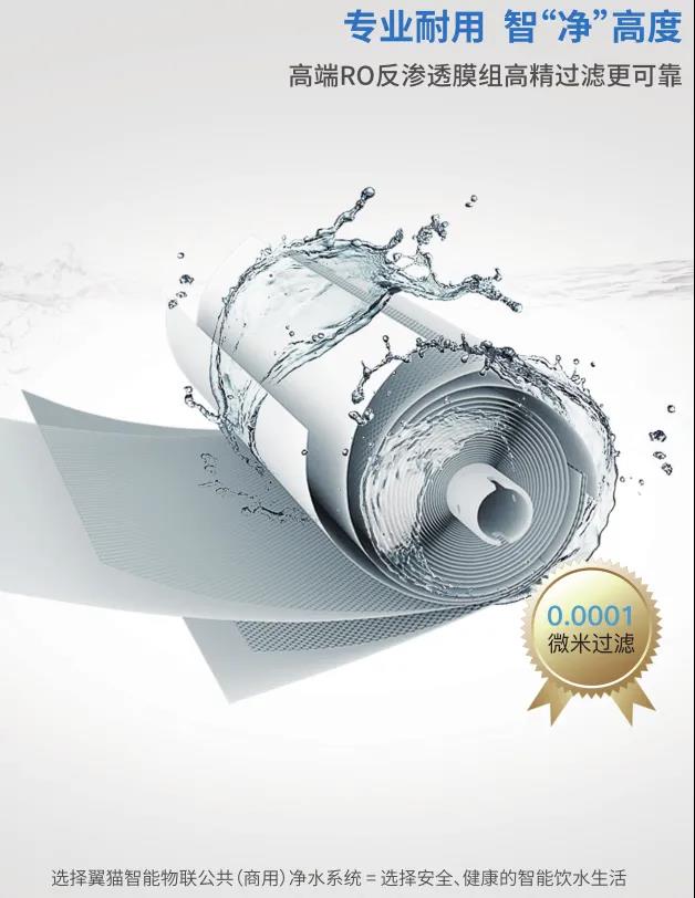 翼猫科技自主研发的翼猫智能净水系统,RO反渗透技术原理,五级过滤,能有效去除原水中的重金属离子、有机化合物、胶体、细菌、异味等污染源,保证饮水健康安全!在物联网远程控制技术支持下可以实现,实时监控、实时检测、实时控制、实时上传,当您在使用过程中,出水水质达不到饮用安全值,水机安全系统启动,会自动切断水源,保证您和家人喝上安全好水,守护您和家人健康!冷/热水双出水,选择你想要的温度。