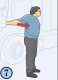 向前俯身,手撑在驾驶室上, 一只脚后退一步。脚后跟落地, 这样可以感到腓肠肌处于紧张状态, 两边换着来保持15-30秒,重复几次。