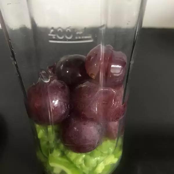 第二步,准备好之后直接放进料理机,打成汁(苦瓜和葡萄的比例可以根据自己的口感调整);