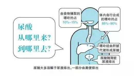 人体中的尿酸80%是身体自己产生的。 内源性尿酸是人体代谢过程中自行产生的。如恶性肿瘤的患者,在放疗和化疗的过程中,肿瘤细胞的大量破坏分解,也会导致内源性尿酸水平的急剧上升。总体而言,大约2/3的血尿酸来自于内源性。