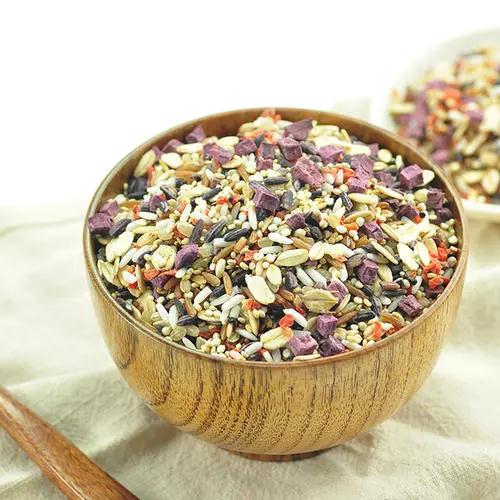 做法: 将杂粮提前用温水泡上 2~4 个小时, (红薯、玉米、山药可以不用浸泡),然后 一同放入电饭锅中,添水,煮饭即可。