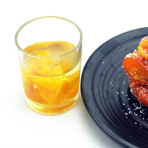 做法:橘饼切成薄片,与干山楂一起放入茶壶内,用刚烧沸的开水冲泡,盖上茶壶盖,泡10分钟即可。